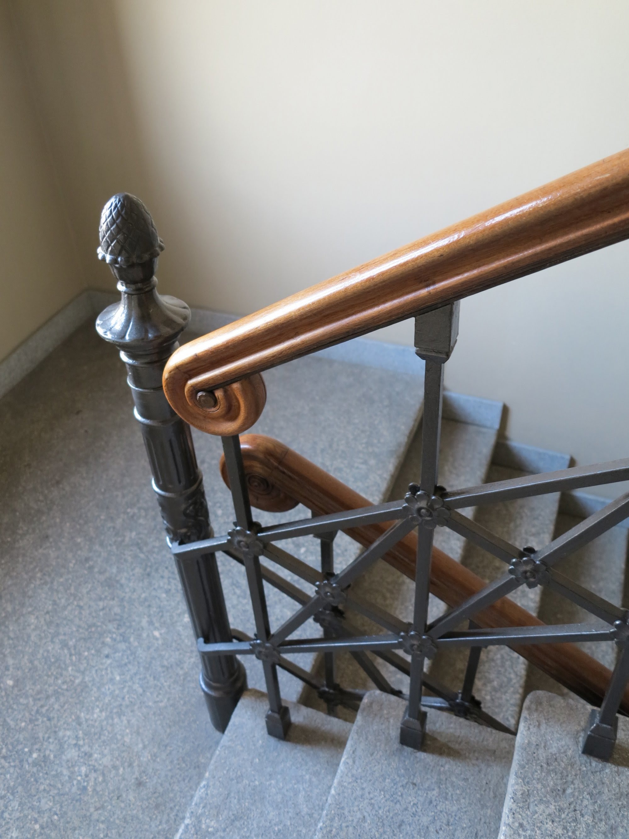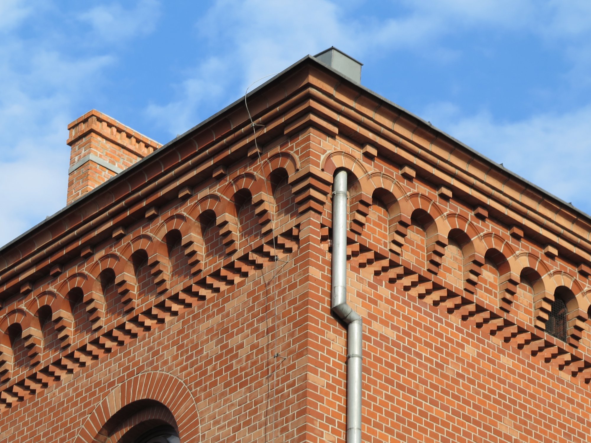 W pierwszej kolejności pracom poddano elewacje, przywracając im pierwotny wyraz architektoniczny przez usunięcie śladów wcześniejszych, prowizorycznych napraw, wzmocnienie strukturalne, oczyszczenie powierzchni metodą strumieniowo-ścierną (tak zwanym gumkowaniem – le gommage), uzupełnienie ubytków lica ścian i kształtek ceramicznych, wymianę wtórnego spoinowania i scalenie kolorystyczne. Prace renowacyjne i zabezpieczające objęły także piaskowcowe kolumny międzyokienne w drugiej kondygnacji, detale tynkowane i stalowe kraty okienne. Na dachu budynku odtworzono, w oparciu o materiały historyczne, formę wysokich ceglanych kominów.
