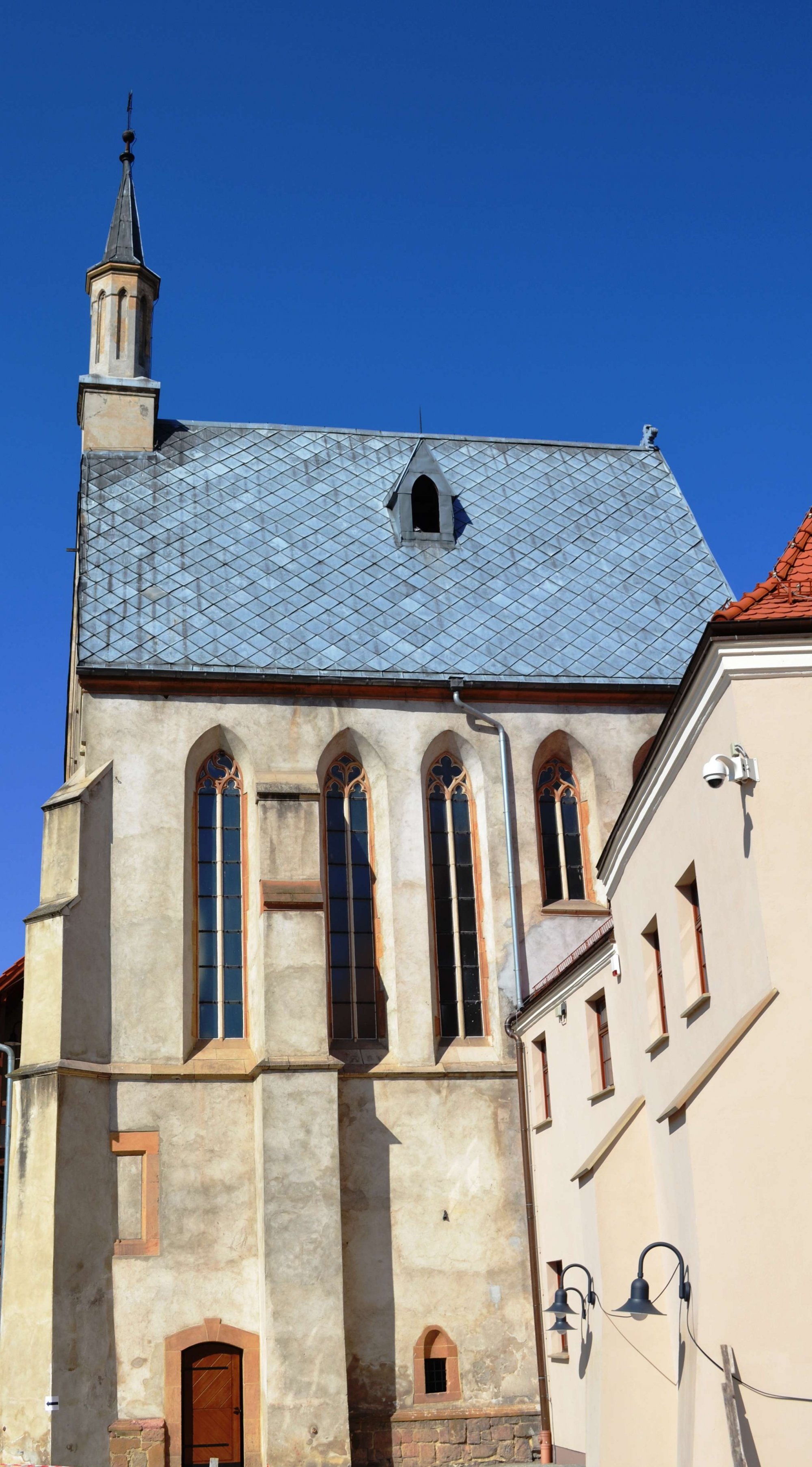 Wykonano nowe pokrycie dachowe. Oczyszczono tynki elewacyjne; na przyporach i w glifach okiennych wprowadzono tynki cienkowarstwowe, pozwalające dostrzec spodnią strukturę muru. W ten sposób podkreślono gradację faktur pomiędzy murem a kamiennym detalem wypełnienia okien – maswerkami, laskowaniem i odsłoniętymi spod wtórnych nawarstwień parapetami. Gotyckie i nowożytne elementy kamiennego detalu architektonicznego oraz portal fasady poddano pieczołowitym pracom konserwatorskim; w oparciu o zachowany element wykonano rekonstrukcję piaskowcowych daszków na uskokach przypór. Wątek ceglany elewacji północnej kaplicy, która w związku z wtórną budową łącznika z domem książęcym znalazła się we wnętrzu zamku, został wyeksponowany wraz z uczytelnieniem układu strzępi przypór.